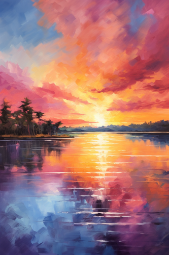 Abstract painting of inclusion and discrimination inspired by sunset.