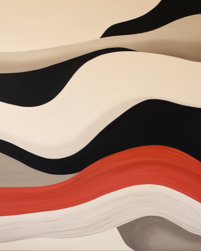 A minimalist vector illustration of interconnected elements forming an abstract representation, rendered in flat colors with clean lines and geometric shapes. The design includes simple black outlines for the connections between different objects like circles or squares on a white background. It has bold red accents that highlight key features to create visual interest. This style is reminiscent of modern graphic design and can be used as print art, poster artwork, social media avatar, logo, and more.