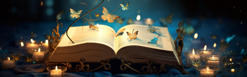 Abstract Quran, candles and butterflies with the quality of a dreamy innovation --ar 1920:600