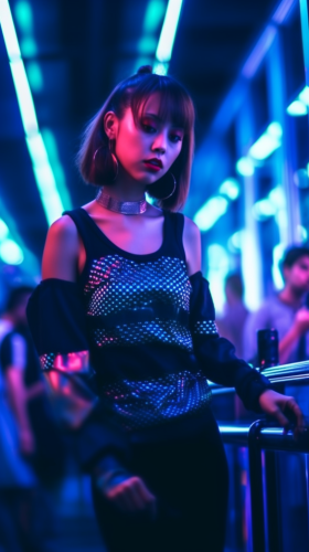 dark luxury club neon lights , beautiful women dancing , Captured with a Canon EOS 5D Mark IV DSLR camera, EF 85mm f/1.4L IS USM lens, boasting a resolution of 30.4 megapixels, ISO sensitivity of 100, and a shutter speed of 1/125 second. --ar 9:16 --v 5.1 --style raw --s 750