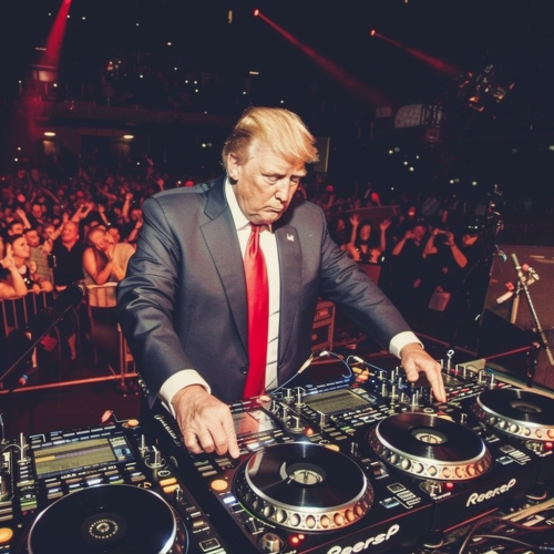 Abstract torn paper collage with Donald Trump dancing at US Capitol