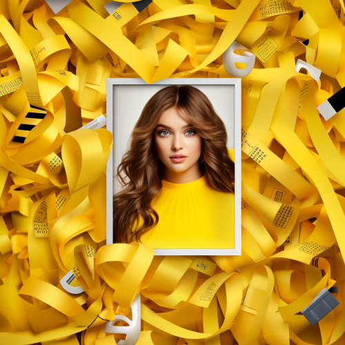 Yellow duct tape for photo collage. Bright scotch tape for the frame. Collage frame with girl's photo, barcode, paper clip and stickers and torn paper. Vector elements.