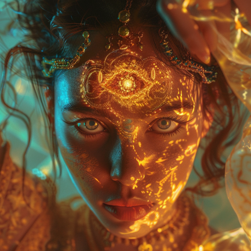 Woman face with third eye neon