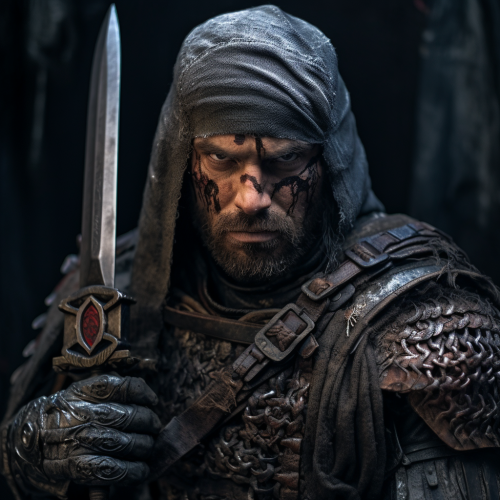 a drew struzan inspired movie poster featuring Baron Ironblood, an SAS soldier and a Claymore sword