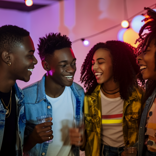 black teenagers having fun at a party, socializing --v 6.0 --s 50