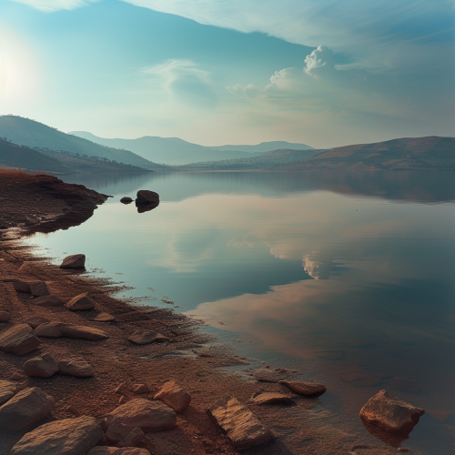 hyper-realistic photograph taken with a Canon 650D and a 150mm lens, capturing a serene, sophisticated scene. The setting is a light purple, almost mauve, lake surrounded by minimalist, ethereal elements. On small, gauze-textured mauve islands of varying heights, groups of people dressed in black sit, their gaze fixed on the far end of the lake. The atmosphere is calm and clean, with a muted sunset sky blending seamlessly into the same mauve hues. In the center of the lake floats a closed high-heeled shoe made of plush, furry fabric, also in mauve. The composition is sleek, artistic, and refined, as if curated for a high-end photography exhibition. The visual style is minimalist yet striking, reminiscent of @joooo.ann’s photography.