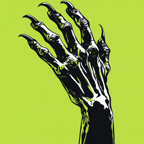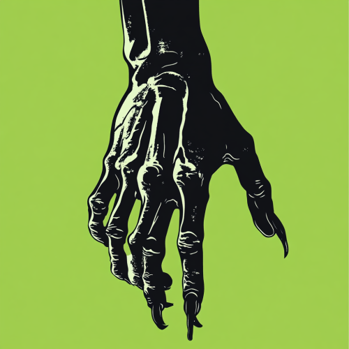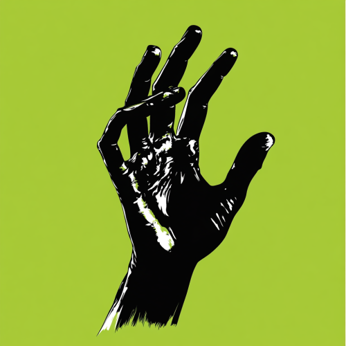 Thing from the hand from Addams Family, in the style of stencil art with a simple design and high-contrast black and white vector on a bright green background,