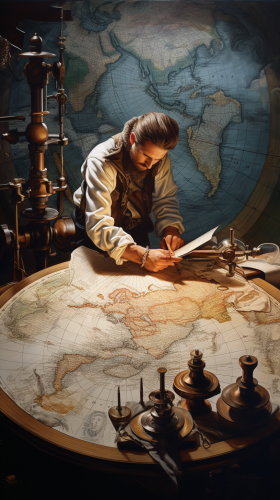 Navigational Prowess: Skilled navigators chart the Pacific waters, paving the way for future explorations and adventures..hyperrealistic --ar 9:16