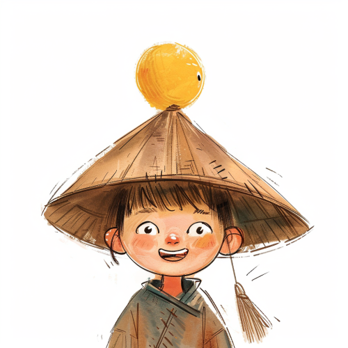 a vector image of a cartoon boy with light skin and ginger hair in a orange sweatshirt eating red white and blue cotton candy