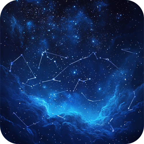 An enchanting app icon featuring a vast night sky filled with countless twinkling stars, with a few of them connected by glowing lines to form a playful and abstract constellation. The background is a deep, rich indigo, fading into black, representing the infinite sky. The stars and constellation lines have a soft glow, creating a sense of magic and creativity. The design should evoke a fun and collaborative atmosphere, hinting at the drawing and guessing aspects of the game, with a whimsical and inviting style.