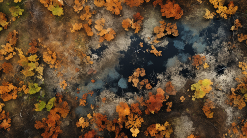 vintage painting: aerial view: a small american town in the fall. matte painting