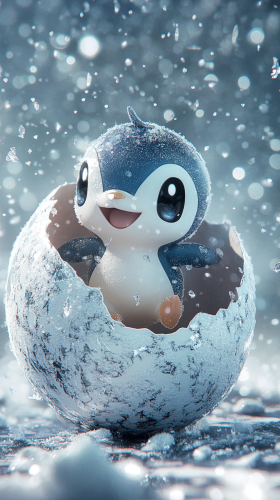 A chibi-style baby Chimchar, with its adorable, fluffy orange fur and big, expressive eyes, emerging from a cracked, cozy egg. The scene is surrounded by a gentle, warm glow with playful, tiny flames and sparkling embers dancing around. The background features a whimsical, fiery landscape with soft, swirling fire effects and a charming, friendly atmosphere. Baby Chimchar’s emergence is highlighted by radiant, cute bursts of flame and a heartwarming, fiery ambiance, all in 8K, HDR, high quality, ultra-realistic details --ar 9:16