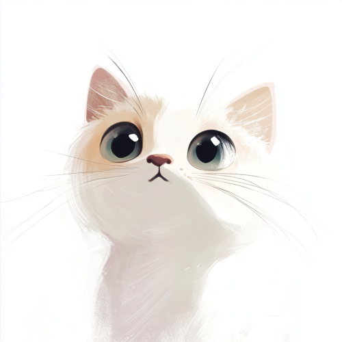 A cute illustration of a cat against a plain white background. The cat has an adorable, playful expression, with big, bright eyes and soft, round features. The style is simple and cartoonish, with soft lines and pastel colors that give the cat a sweet and endearing look. The white background keeps the focus on the charming cat, with no additional objects or distractions in the scen