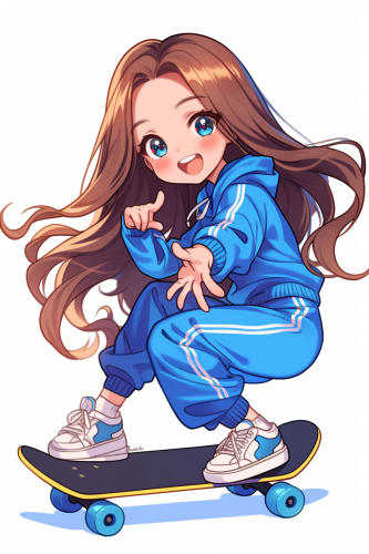 a beautiful woman, 2000s high school skater girl, tan skin, long dark hair, brown eyes, 2000s wearing baggy skater clothes, holding a skate board, unpopular, 2000s high school background, 2000s skater theme, 2000s skater setting --niji 6