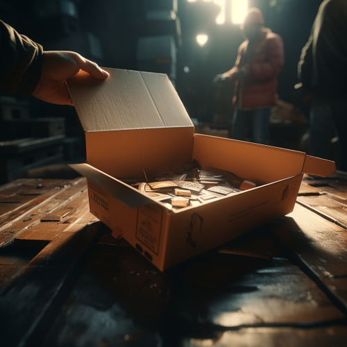 Cardboard box with bubble wrap and kraft paper for packaging. Film still, Clear facial features, highly detailed, hyper realistic, ultra realistic, cinematic, high quality resolution, professional, Depth of Field, hyper-detailed, insane details, intricate details, beautifully color graded, Unreal Engine, Shot on 25mm lens, Depth of Field, DOF, Tilt Blur, Shutter Speed 1/1000, F/22, White Balance, 32k, Super-Resolution, Megapixel, Pro Photo RGB, VR, Half rear Lighting, Backlight, Natural Lighting, Incandescent, Optical Fiber, Moody Lighting, Cinematic Lighting, Studio Lighting, Soft Lighting, Volumetric, Conte-Jour, Beautiful Lighting, Accent Lighting, Global Illumination, Screen Space Global Illumination, Ray Tracing Global Illumination, Optics, Scattering, Glowing, Shadows, Rough, Shimmering, Ray Tracing Reflections, Lumen Reflections, Screen Space Reflections, Diffraction Grading, Chromatic Aberration, GB Displacement, Scan Lines, Ray Traced, Ray Tracing Ambient Occlusion, Anti-Aliasing, FKAA, TXAA, RTX, SSAO, Shaders, OpenGL-Shaders, GLSL-Shaders, Post Processing, Post-Production, Cell Shading, Tone Mapping, CGI, VFX, SFX, hyper maximalist, elegant, super detailed, ambient occlusion, volumetric lighting, high contrast, HDR --s 750 --v 6.0 --ar 16:9