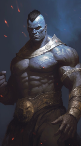 half dragon god, dark grey skin, lightning eyes, extremely muscular, handsome, hulking, wearing a noble outfit, five o'clock shadow, scales and tatoos, reallistic, tyrant, king, chiaroscuro, illustration by Nick Alm, Charlie Bowater and Frank Fazzeta epic, fantasy art, artstation, 8K HD --ar 9:16 --v 5.1 --s 750