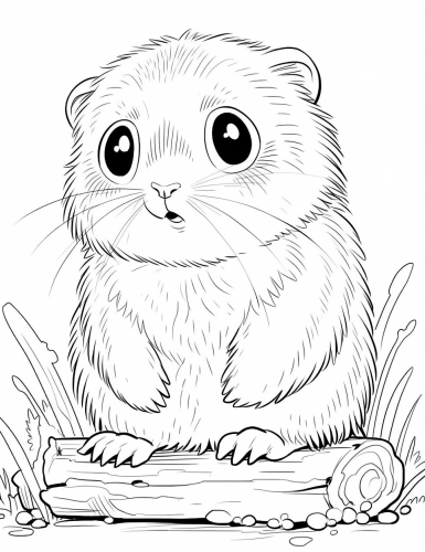 adult coloring pages, an adorable little baby beaver, in the style of chibi, with very large shiny eyes, cute and charming characters, in the style of Naomi Lord, Hannah Shay, chibi-core, cottagepunk, highly realistic, babycore, simple background, i can't believe how beautiful this is, soft and airy compositions, delicate use of line --niji 5 --ar 100:129