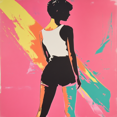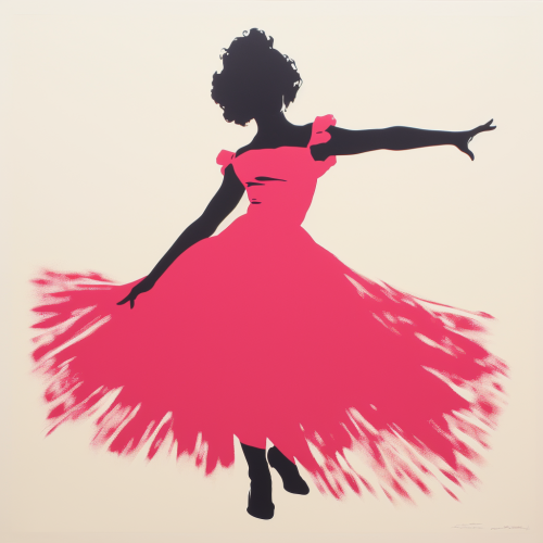 Andy Warhol screen print of a simplified dancing women in a fluffy dress