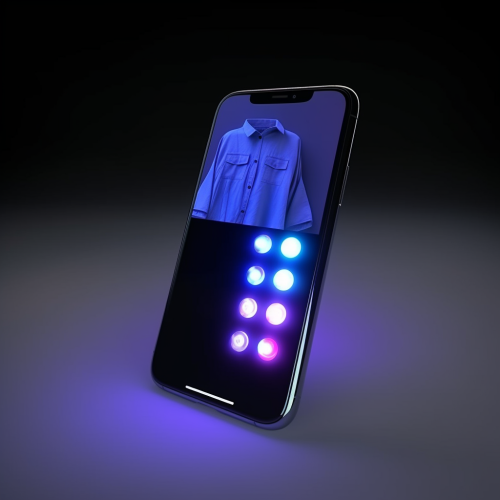 cell phone filter that shows you suggestions for dressing, with blue LED colors, ultra HD, hyperrealistic, --ar 1:1 --v 5.0