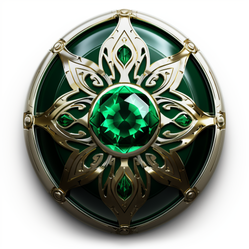 design a round shield With emeralds green color and white diamonds represents a green handset on a white background. The green handset is a traditional icon associated with phone calls and voice communication, while the white background provides a visual contrast.