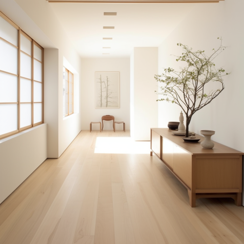 A human figure in a minimalist room, standing alone, the figure's features blurred to suggest simplicity, with cold light from a small window, everything sparse and empty. --sref 1174761156