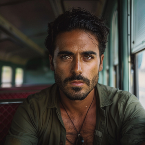 un corte en el techo de un tren donde se ve la cara de Édgar RamÃrez, el actor venezolano en primer plano como cirujano donde en primer plano esta siendo observado desde adentro de una caja toraxica mientras esta operando la misma. Introduciendo un bisturi de cirugia para cortar el resto del cuerpo. reconocido por sus operaciones innovadoras que tiene un lado oscuro, se ve con una cara de malvado mientras tiene una mirada penetrante y esque asesina pacientes operandolos de formas innadecuadas. Una mezcla de colores cálidos y suaves con toques rojos. FotografÃa hiperrealista, HD, real y realista, iluminación suave y espectacular. gran angular --v 6.0
