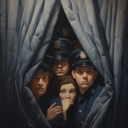 child hiding from intruder behind slightly open door, dark and dramatic ominous thriller style, cinematic Nikon D850 35mm --ar 4:5 --style raw --v 6.0
