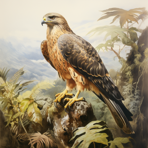 drawing or watercolor of the Hawaiian Hawk (Buteo solitarius)