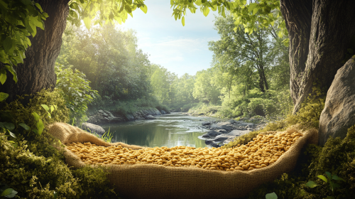 Inside a clear glass cup, capture the delectable fusion of creamy vanilla frozen custard interlaced with generous chunks of pumpkin pie. Each layer should reveal the rich contrast between the soft custard and the spicy notes of the pie filling, with glimpses of the flaky crust. Complement this dessert with a background of swirling fall leaves, perhaps a light sprinkle of nutmeg on top, all bathed in the soft glow of a setting autumn sun, evoking a feeling of warmth and indulgence.