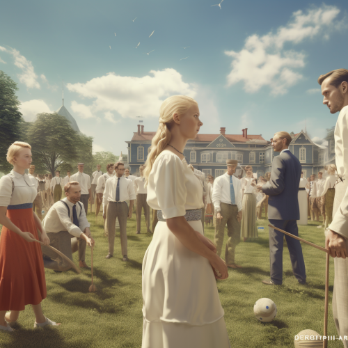a large crowd of blonde scandanavian people playing croquet and having a really good time, photorealistic, 4k