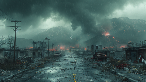 poor middle eastern setting, a man thrown infront of a wrecked strore front, wes anderson movie , david fincher movie, , dark green and orange color palette --ar 7:4 --v 6.1