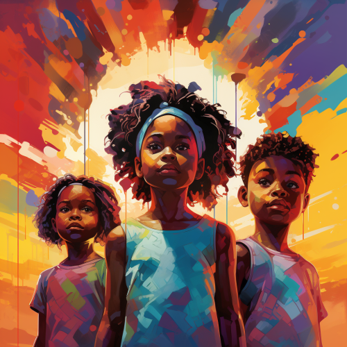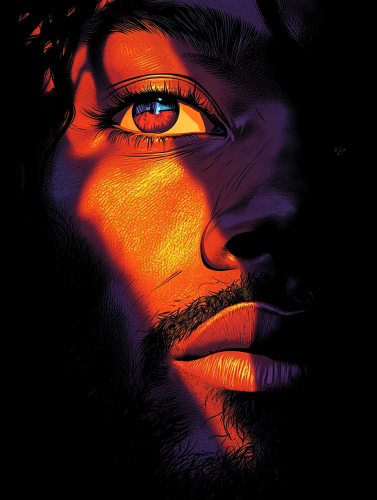 A digital cartoon illustration of a man facing camera with a look of contemplation and hope, close-up, African American man, shadow covering part of his face --ar 3:4 --stylize 1000 --v 6.1