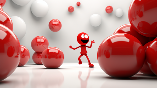 energetic character in suite, red ball instead of head, playing with the kids, light background --ar 16:9