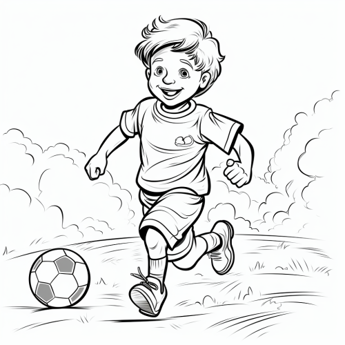 Kids hand-drawn doodle of kids playing football. White background. Blue and black watercolor --tile