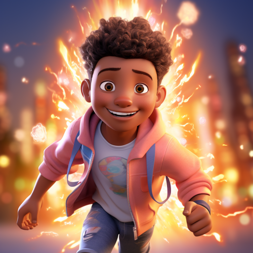a happy African american boy running with white background, cartoon style, delicate, Americana, Ghostcore, cow-boy shot, 2d platformer, Bokeh, Sticker, rainbow colors, Gothic , glowing fire lighting, Hyperrealistic textures, intricate details, architectural visualization, Corona render, 8k