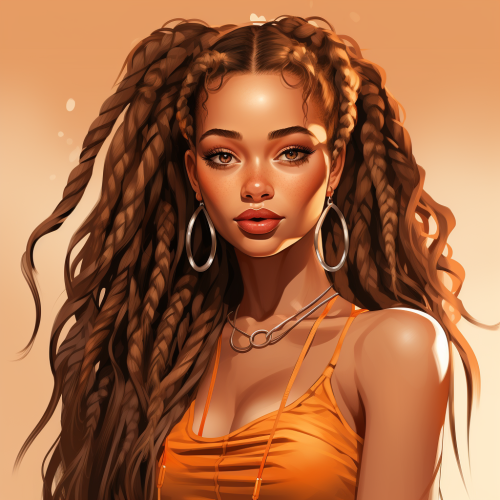 cartoon art of glamourous and beautiful brownskin african american ig model, full lips, long knotless box braids, copper haircolor, drawn in procreate --style raw --s 250