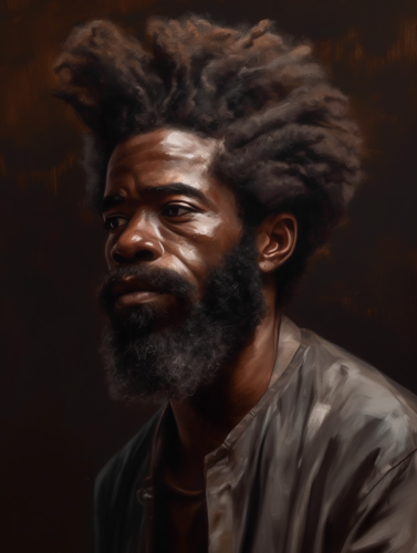 African American male beard and afro, made look ::3 full body oil painting --ar 3:4 --s 1000 --v 5.0