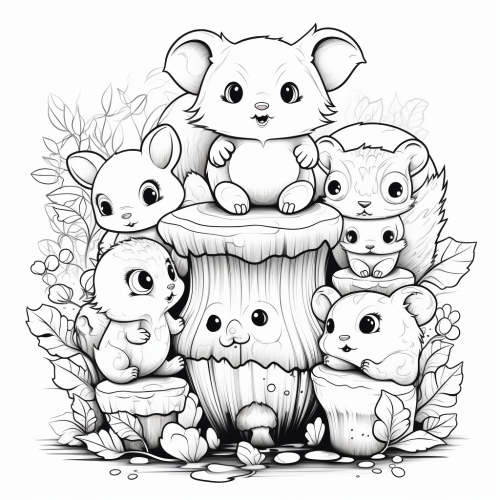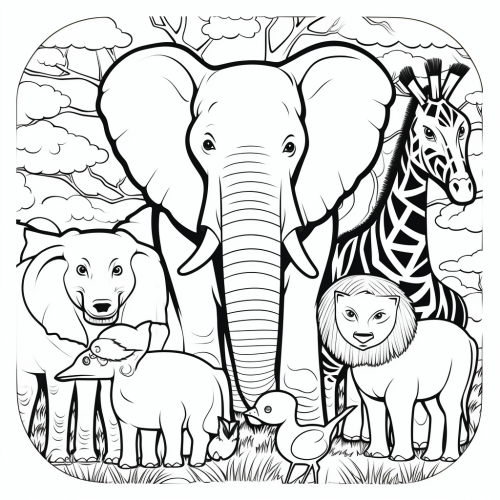 kids colouring book page, simple, cartoon, line drawing no shading, b&w, vector image, big shapes african animals