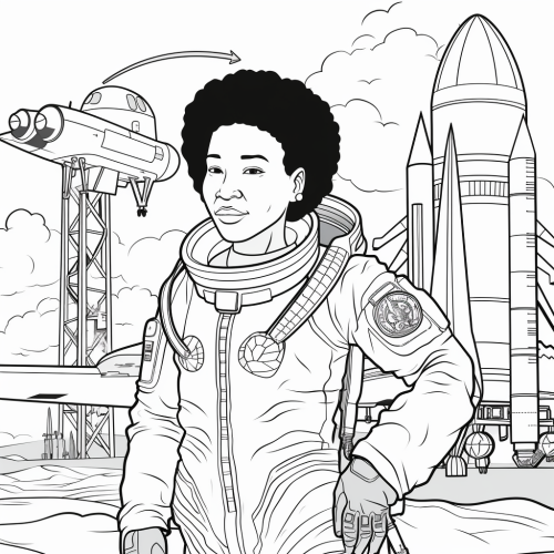 simple coloring page, african american woman, hipster, abstract art, white background, bold lines, for childs coloring page. --ar 2:3