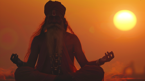 Meditating indian Hindu Sage in silhoutte, hyper realistic detailed UHD --ar 16:9