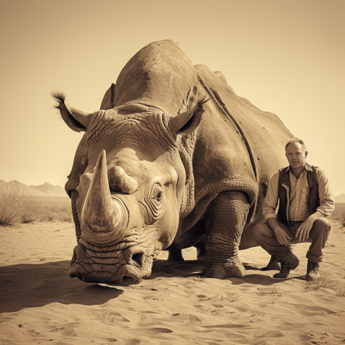 fujifilm photo of a tiger in the african savannah looking at Zebras, rhinos, giraffes and a bear, HR Giger style, Cyberpunk