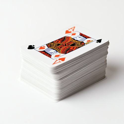 Deck of playing cards stacked neatly, plain white background, clean and minimal design, realistic lighting, no shadows, no textures on the background.