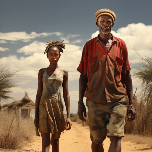 a hyper realistic picture of An African man standing beside his grown up daughter, Another man walking away --v 5.2