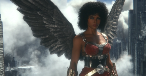 Steam punk Attire with mechanical wings, Harlem New York roaring twenties, Louis Icart's etching style, Erte, extremely beautiful african american people, art deco, art nouveau, tarot art, extremely fine detail, 3d, octane render, hdr, Harlem scene, high tonal contrast, dynamic lighting, back lighting, 8k, --chaos 16 --sref 20240806 --v 6.1 --ar 98:51