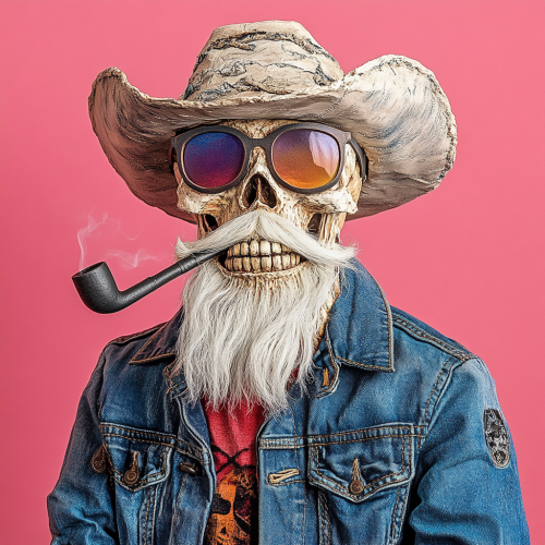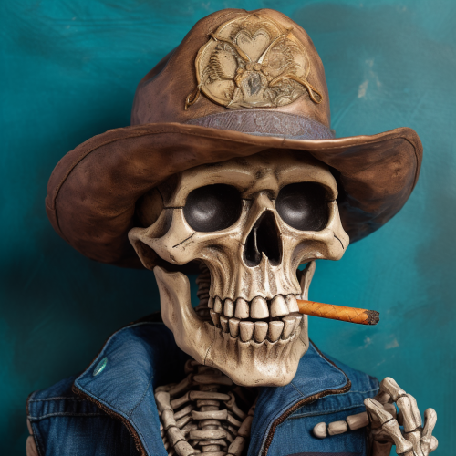 Aggressive skull with star eye in cowboy helmet graffiti.
