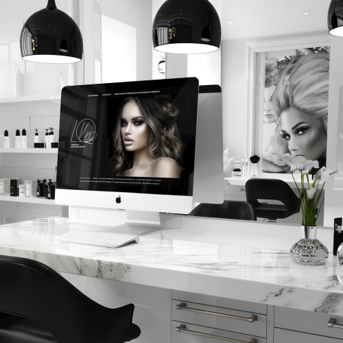 Create a website mockup for a very luxurious hairdresser that serves celebrities and looks very expensive. The design should be modern, simple, elegant and appealing. It should also show that the hairdresser is a master in his field. show only the display nothing else. no computer or background. Use the colors white and black. --v 6.0