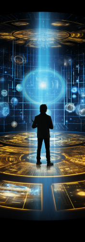 a world conected on digital hologram style evocando transacciones inverciones criptomonedas y oro --ar 7:20