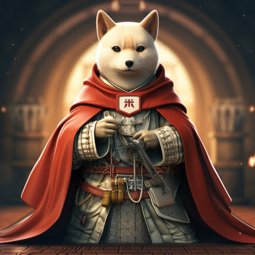 Knights Templar clean, precise, protecting blockchain data, SHIBA INU mascot in the background --v 5.2 --s 250