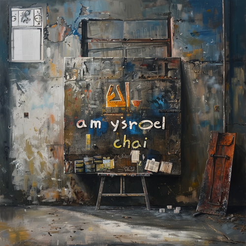 A Star of David at the center of a poster, detailed with delicate circuit lines to signify the integration of AI and Jewish tradition. At the heart of the star is a subtle digital glow, representing enlightenment and divine insight. Surrounding the star are traditional symbols like a Torah scroll, a menorah, and Hebrew letters, grounding the design in Jewish heritage while introducing a modern technological element. The color palette includes deep blue, silver, and gold, merging the sacred with the futuristic. --v 6.1 --ar 16:9