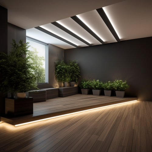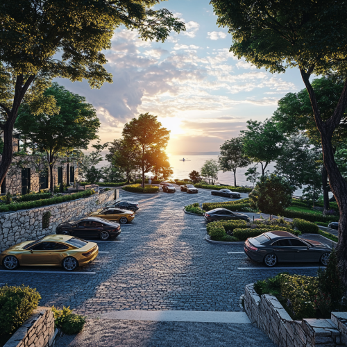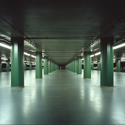 imagina el diseño interior de un parqueadero subterráneo Concepto: Minimalista, con paleta de colores de madera, gris oscuro, blanco y concreto. Iluminación: Artificial directa e indirecta, resaltando cada automóvil. Distribución: Seis vehÃculos, tres a cada lado. Madera en los muros del lado izquierdo. Techo: Gris oscuro con diseño de iluminación en drywall. Estilo: Varonil, contemporáneo y lujoso. Exclusividad: Cada detalle pensado para una experiencia única y sofisticada.